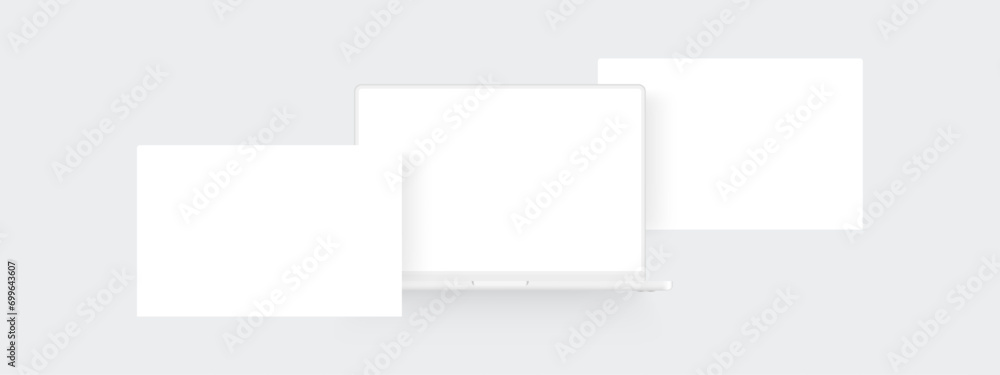 The watermark will not be included on Wall mural.: Clay laptop with blank web screens, front view - blank mockup for showcasing web-design projects - vec