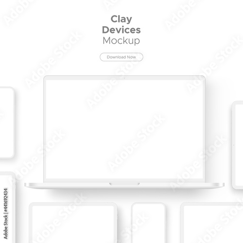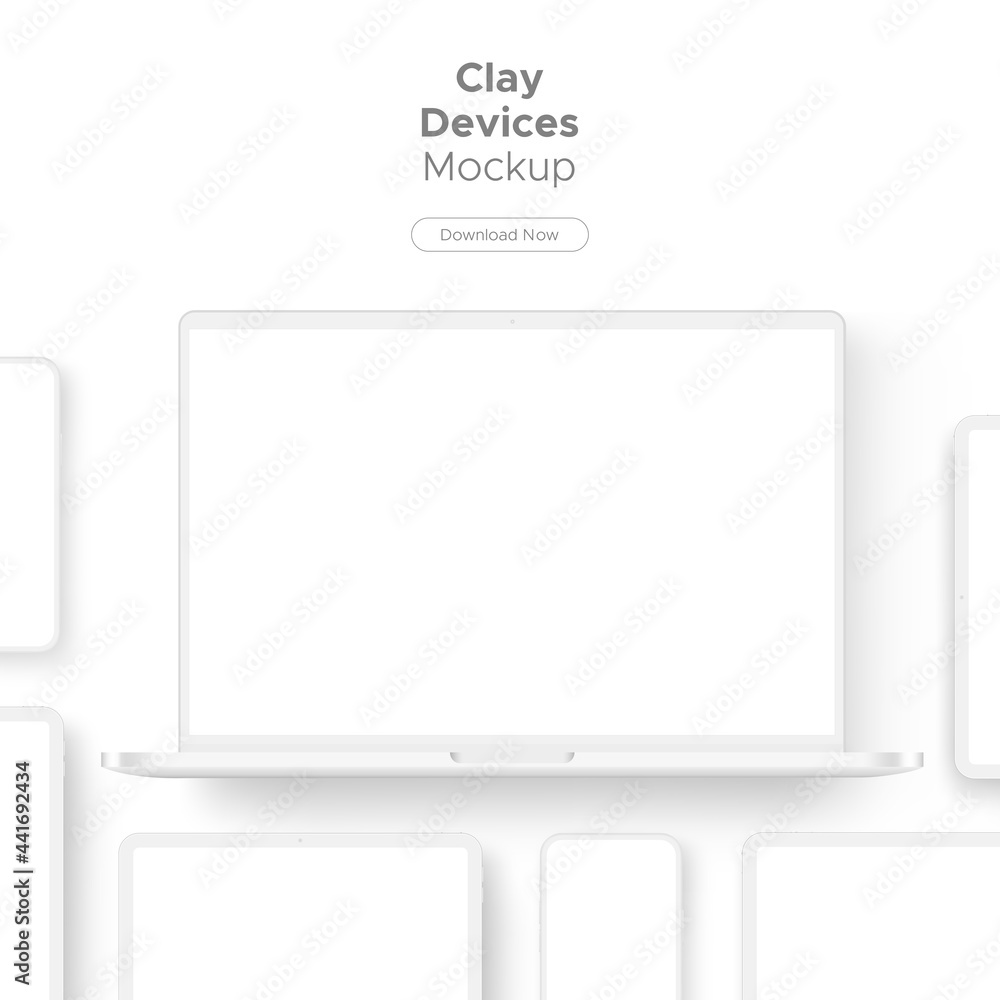 The watermark will not be included on Wall mural.: Clay responsive devices mockup for display web-sites and apps design - vector illustration