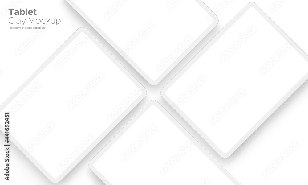 Wall mural : Clay tablet computer mockup with blank screen for showing apps design, isolated on white background -