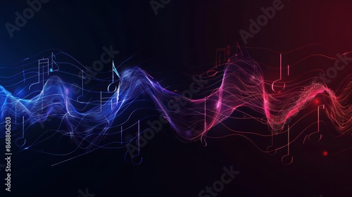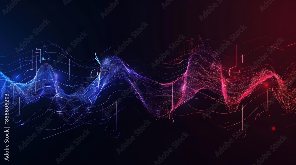 The watermark will not be included on Wall mural.: Clean cyber banner showcasing a music splash with sleek lines and glowing elements with copy space