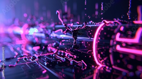 The watermark will not be included on Wall mural.: Clean cyber banner showcasing a music splash with sleek lines and glowing elements with copy space