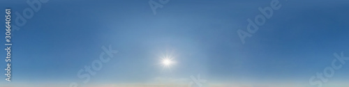 Wall mural : Clear blue sky with scorching sun - seamless hdri panorama 360 degrees angle view with zenith for use