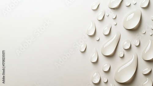 The watermark will not be included on Wall mural.: Clear droplets on a smooth white surface creating an abstract background for product presentation