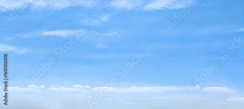 Wall mural clear scene of blue sky and gentle clouds. several wispy white clouds floating in different shapes a