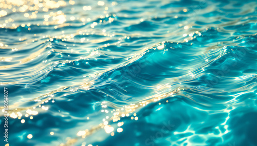 Wall mural : Clear turquoise water with gentle waves and sparkling reflections of light on the surface - the image