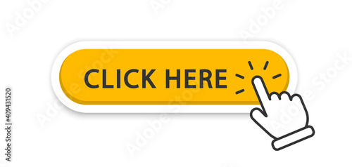 Wall mural : Click here button with hand pointer clicking - click here vector web button - web button with action o