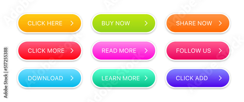 Wall mural : Click here web buttons - set of action button read share follow buy learn download - click button - mod