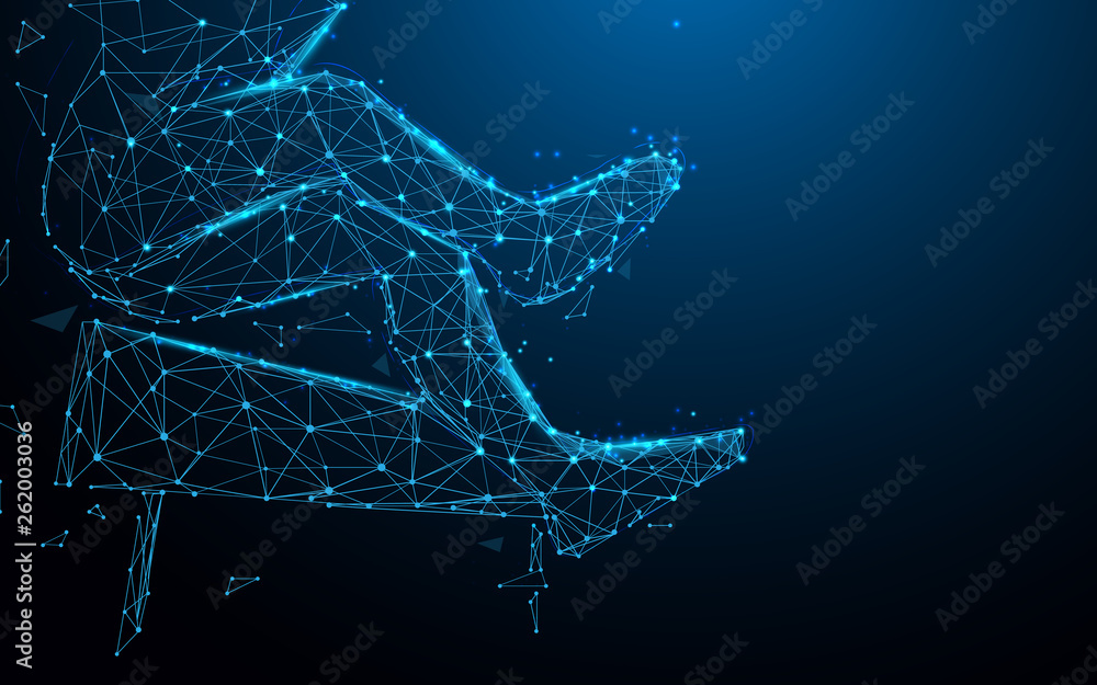 Wall mural close up, man jumping over obstacle from lines, triangles and particle style design. illustration ve