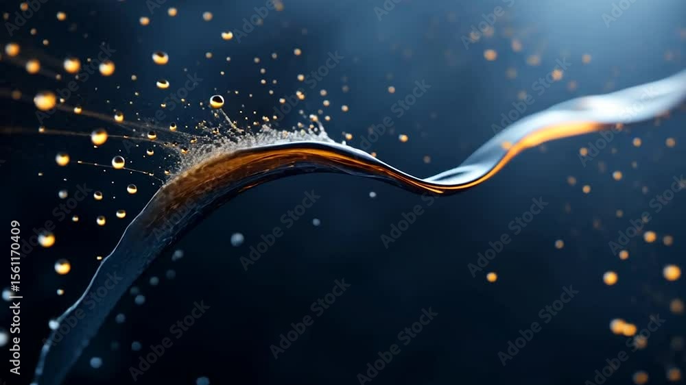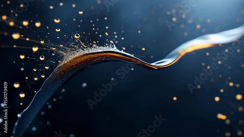 Wall mural close-up abstract video of a swirling metallic ribbon with golden particles emanating against a dark - Wall murals Wall mural close-up abstract video of a swirling metallic ribbon with golden particles emanating against a dark - Wall murals