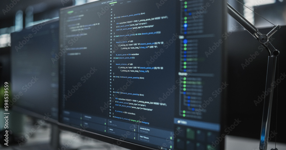 The watermark will not be included on Wall mural.: Close up focus on desktop computer screen - digital display showing coding language user interface - s