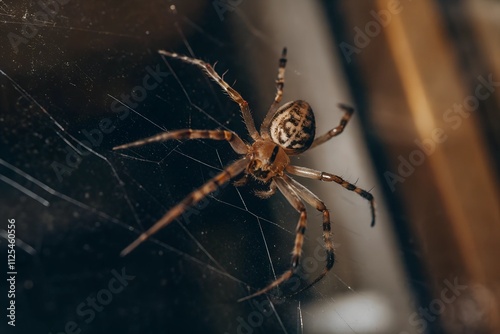 The watermark will not be included on Wall mural.: Close up image of a spider intricately weaved within its web
