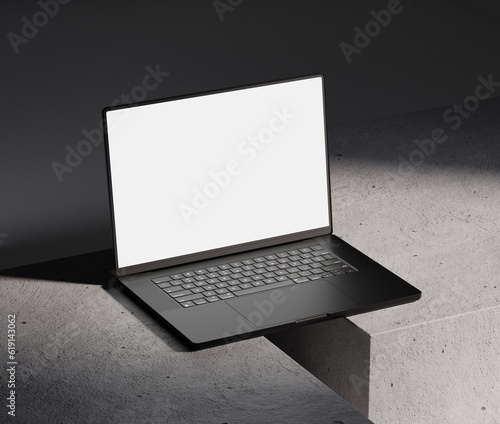 Wall mural : Close up laptop mockup with blank white screen, responsive web design and website mockup, advertisem
