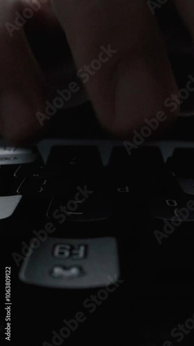 Wall mural close-up man typing on computer keyboard with hands and fingers. macro soft focus dolly shot. comput
