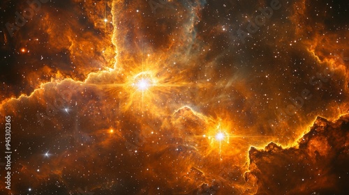 The watermark will not be included on Wall mural.: Close-up of a binary star system in a vibrant nebula