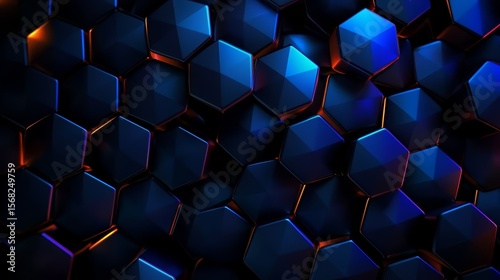 Wall mural : Close up of a blue and orange background with a pattern of hexagons - the hexagons are blue and orang