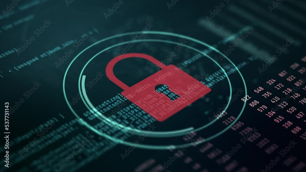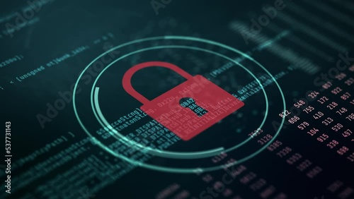Close-up of a computer monitor, random data and code on background, circular futuristic hud with a pWall mural