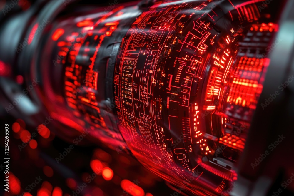 Wall mural close-up of a computer screen with red lights illuminated, suitable for tech-related or futuristic c - Wall murals Wall mural close-up of a computer screen with red lights illuminated, suitable for tech-related or futuristic c - Wall murals