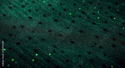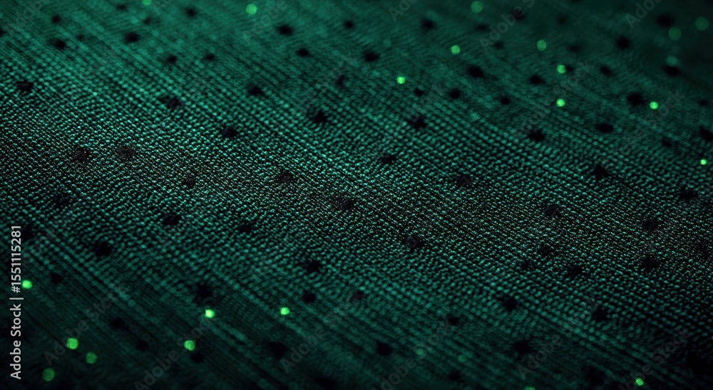 Wall mural : Close-up of a dark teal fabric with a subtle, repeating dotted pattern and slight sheen, showing tex