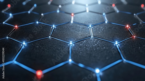 The watermark will not be included on Wall mural.: Close-up of a futuristic hexagonal pattern with glowing lights, showcasing a blend of technology and
