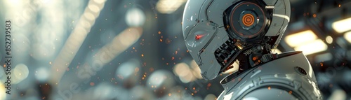 Wall mural Close-up of a futuristic robot with intricate mechanical details, illuminated background adds an advanced technological ambiance. - Wall murals Wall mural Close-up of a futuristic robot with intricate mechanical details, illuminated background adds an advanced technological ambiance. - Wall murals