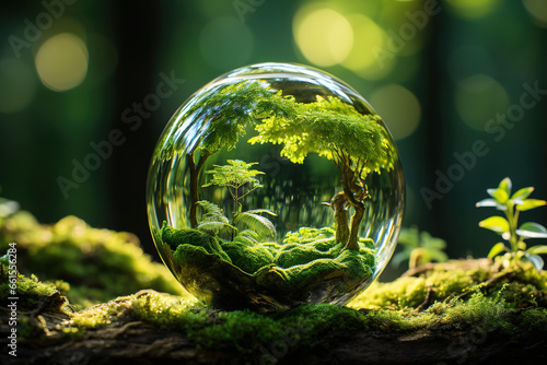 The watermark will not be included on Wall mural.: Close up of a glass globe with tree - generative ai