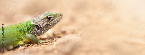 Close-up of a green lizard - web banner with blank, copy spaceWall mural