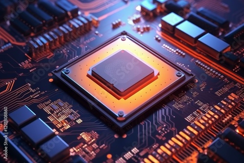 The watermark will not be included on Wall mural.: Close up of a modern cpu, highlighting its processing power and intricate connection to a circuit bo