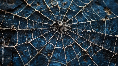 Wall mural : Close-up of a spider web on a textured surface, showcasing intricate patterns -