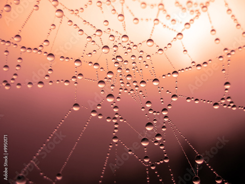 The watermark will not be included on Wall mural.: Close up of a spider web with dew drops