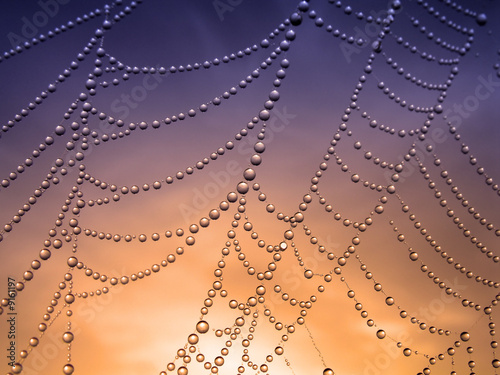 Wall mural : Close up of a spider web with dew drops