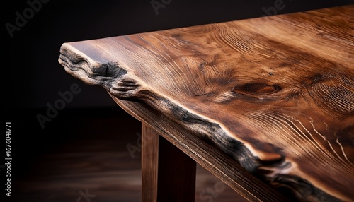 Close up of a weathered wooden table corner against a dark backdrop the table s surface shows signs Wall mural