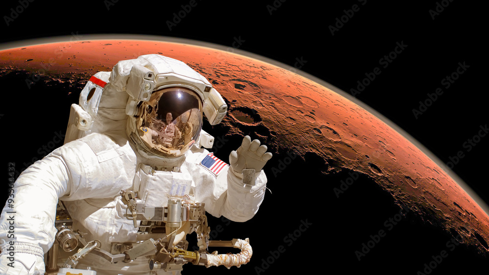 Wall mural close up of an astronaut in outer space, planet mars in the background. elements of the image are fu