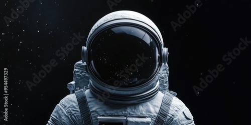 Wall mural close up of an isolated astronaut on a black background in a 3d cartoon rendering - Wall murals Wall mural close up of an isolated astronaut on a black background in a 3d cartoon rendering - Wall murals