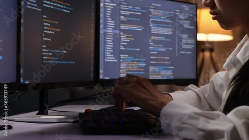 Wall mural close up of asian female programmer creating innovative software engineer developing app, program, v - Wall murals Wall mural close up of asian female programmer creating innovative software engineer developing app, program, v - Wall murals