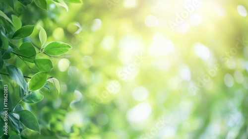 Wall mural close up of beautiful nature view of green leaf on blurred greenery background in garden and sunligh