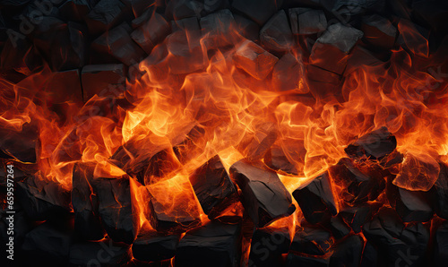 The watermark will not be included on Wall mural.: Close-up of burning lump coal as an abstract background -