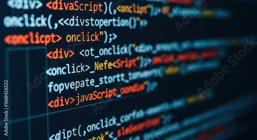 The watermark will not be included on Wall mural.: Close up of computer code on a dark screen