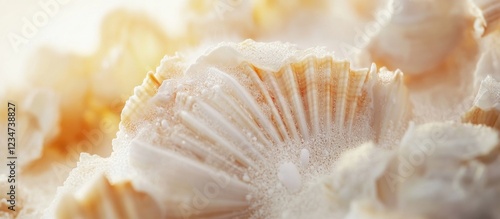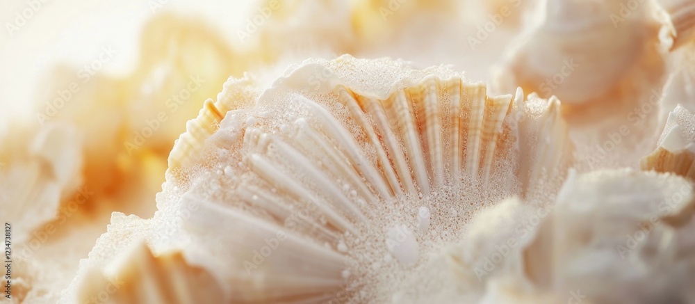 The watermark will not be included on Wall mural.: Close-up of delicate seashells with soft lighting and textured surfaces copy space