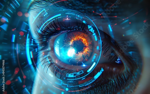 Wall mural close-up of eye with digital futuristic interface overlay. artificial intelligence concept. futurist
