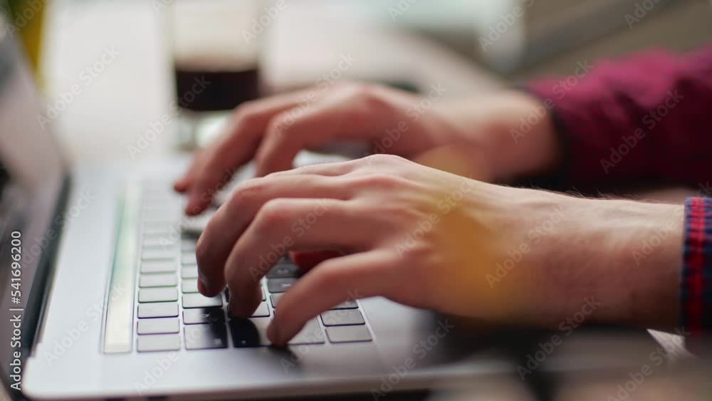 Wall mural close up of freelancer's developer hands typing program code on laptop keyboard in coworking. busine - Wall murals Wall mural close up of freelancer's developer hands typing program code on laptop keyboard in coworking. busine - Wall murals