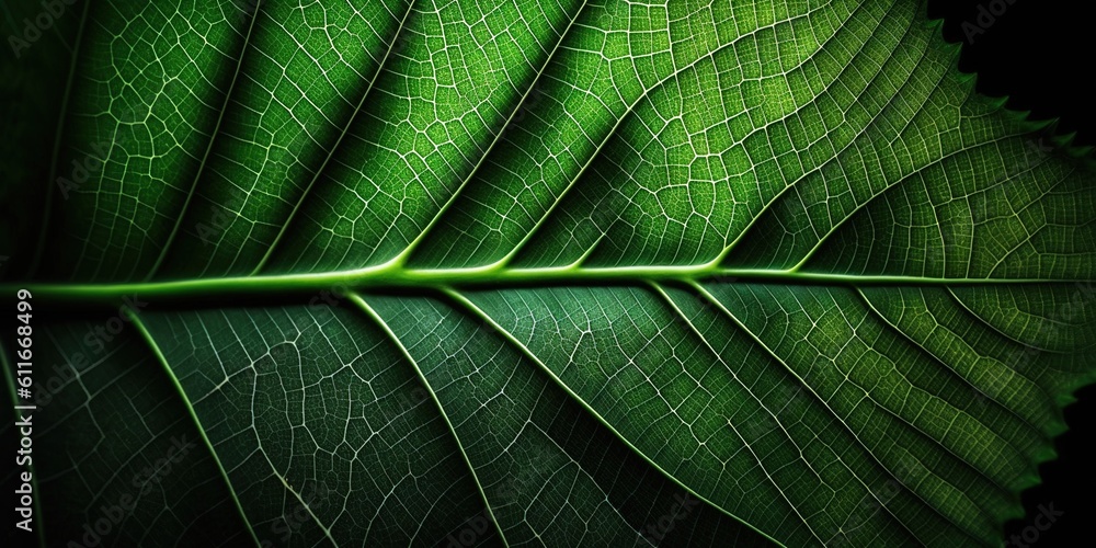 Wall mural : Close-up of green leaf texture for backdrop generative ai