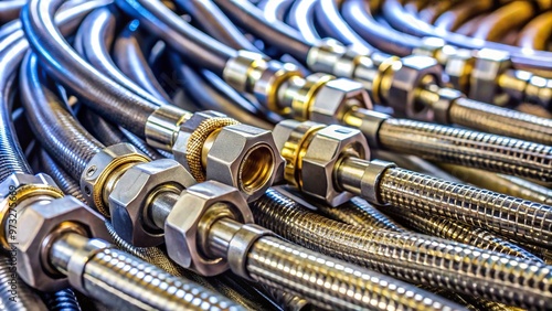 The watermark will not be included on Wall mural.: Close-up of hydraulic hoses connected with shallow depth of field