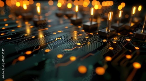 Close-up of illuminated circuit board with glowing components and intricate pathwaysWall mural