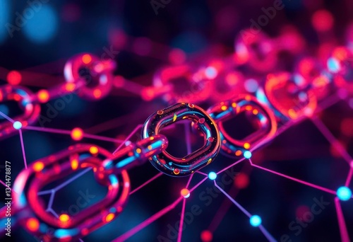 Close-up of interconnected digital chain links forming an abstract network, circuit, digitalWall mural