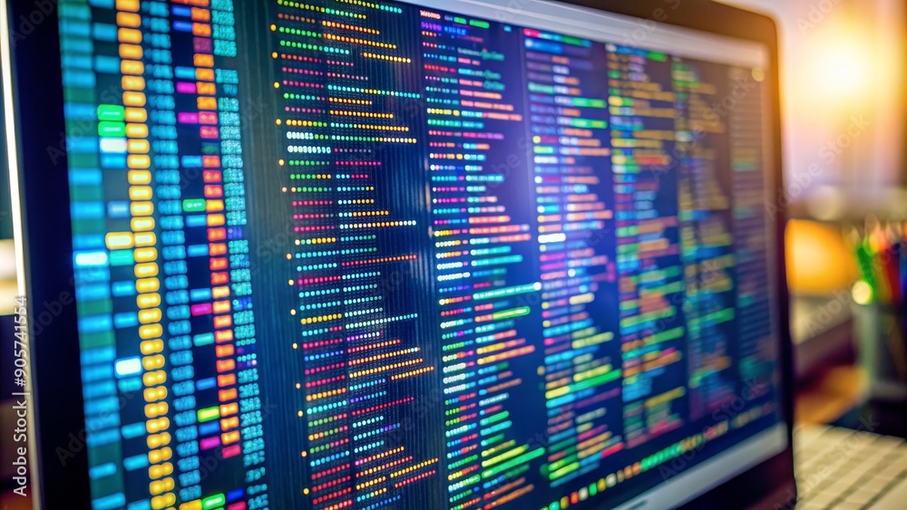 Close-up of laptop screen with colorful code, coding, software development, programming, technologyWall mural