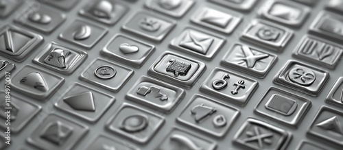 The watermark will not be included on Wall mural.: Close-up of metallic application icons on a digital interface -