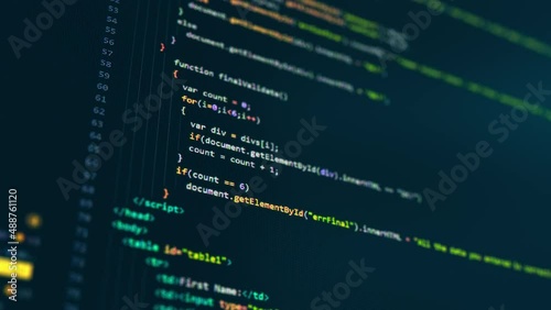 Wall mural close up of monitor screen with developing programming and coding technologies. programmer or hacker - Wall murals Wall mural close up of monitor screen with developing programming and coding technologies. programmer or hacker - Wall murals
