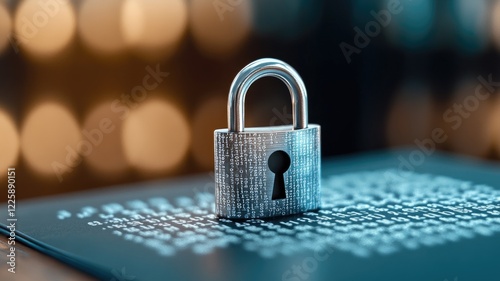 Close-up of padlock on page with binary code, symbolizing data securityWall mural