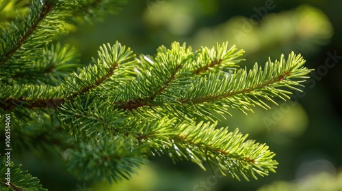 Wall mural close-up of pine tree branches highlighting the details of evergreen foliage. this macro photo of pi