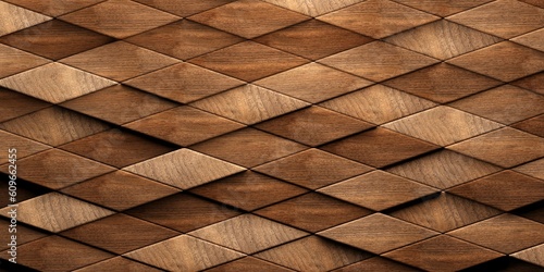 The watermark will not be included on Wall mural.: Close up of randomly offset shifted stretched rhomb wooden cubes or blocks surface background textur